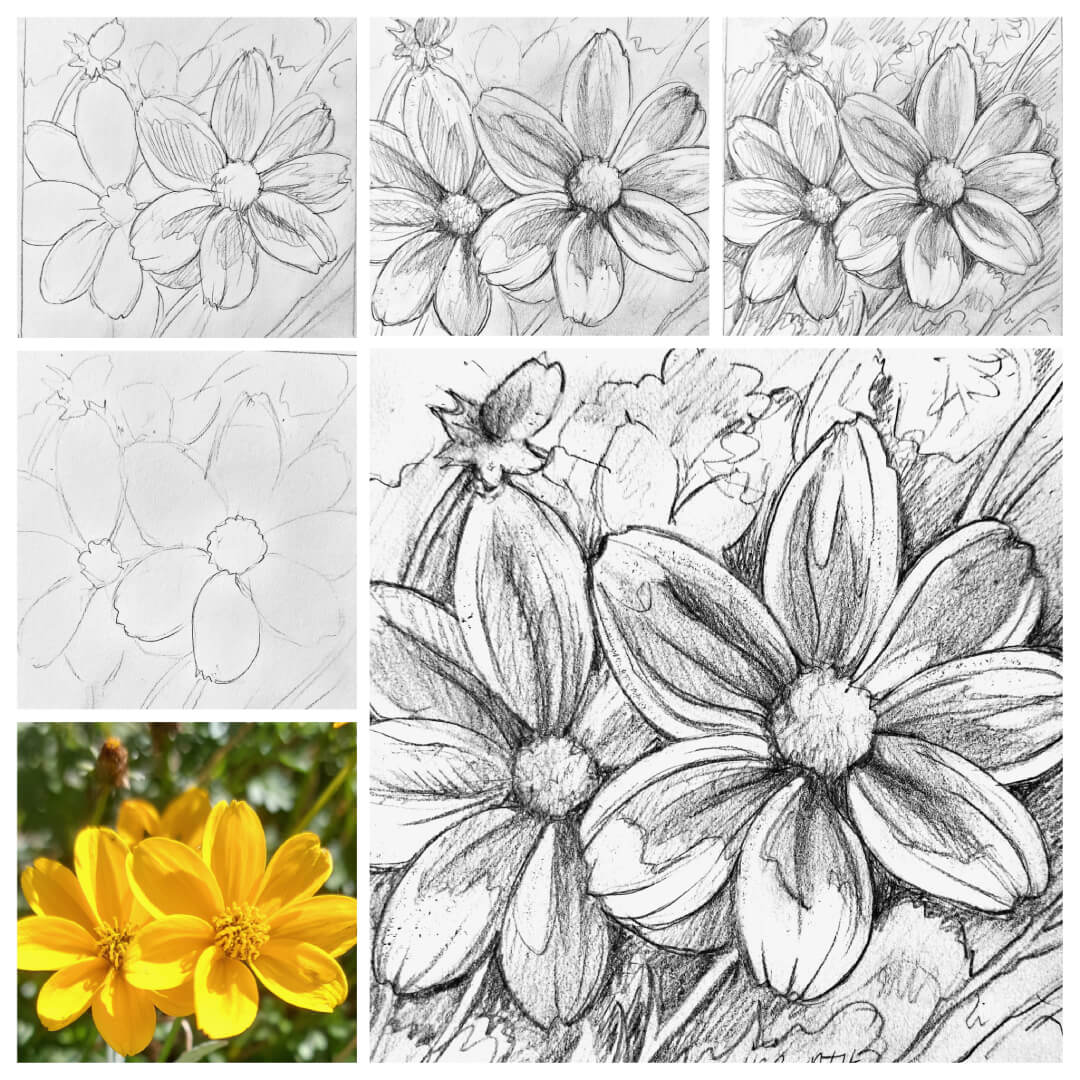 A collection of 31 original flower paintings that started as drawings and came to life with watercolor!!
