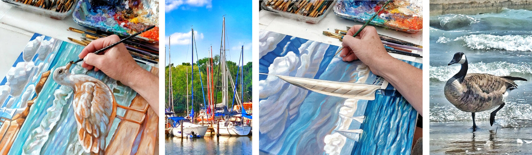 A collection of 9 original paintings inspired by everchanging lake moods.