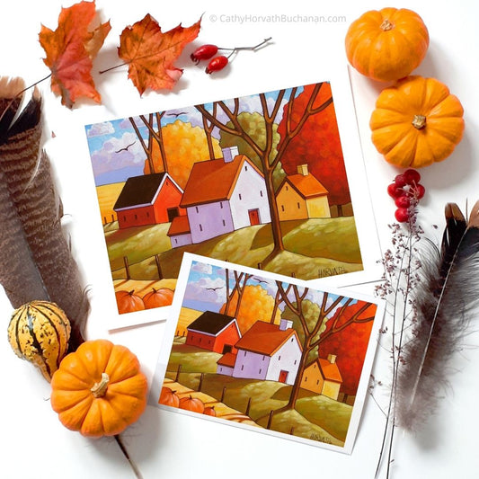 Fall Farm Trees Art Print, Country Folk Harvest Giclee