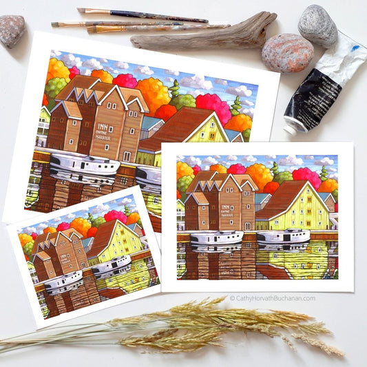 Port Stanley Inn on the Harbor, Scenic Coastal Lake View Folk Art Print