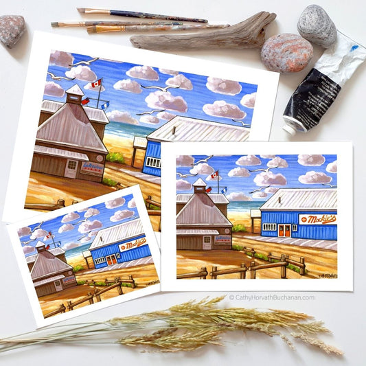 Port Stanley Mackies on the Beach, Historic Coastal Lakefront View Art Print