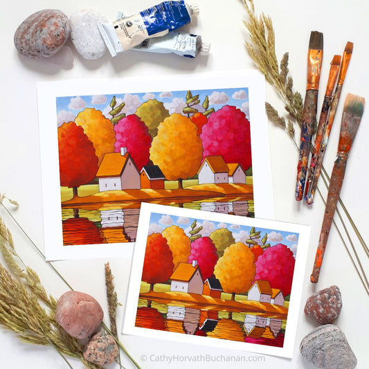 Fall Trees River Reflections Art Print, Autumn Colors Giclee