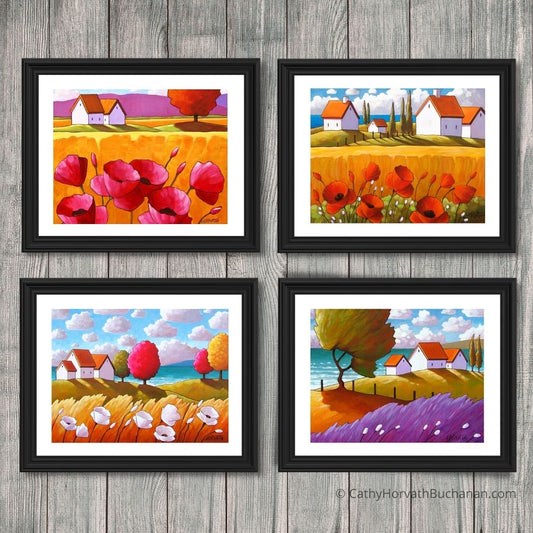 5x7 Set of 4 Scenic Wildflower Art Prints, Garden Landscape Collection Giclees