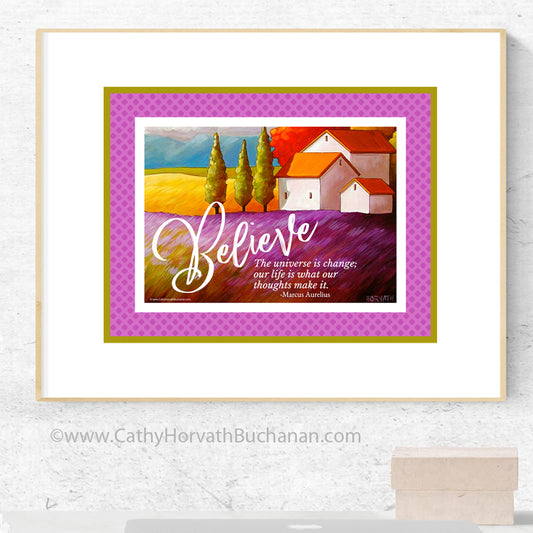 Believe, Inspirational Quote Wall Art Printable with Guide, PDF Instant Download