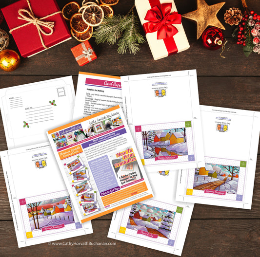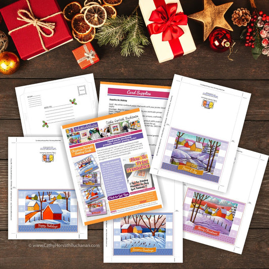 Christmas Scenes Printable Cards Set of 5 Kit, PDF Instant Download