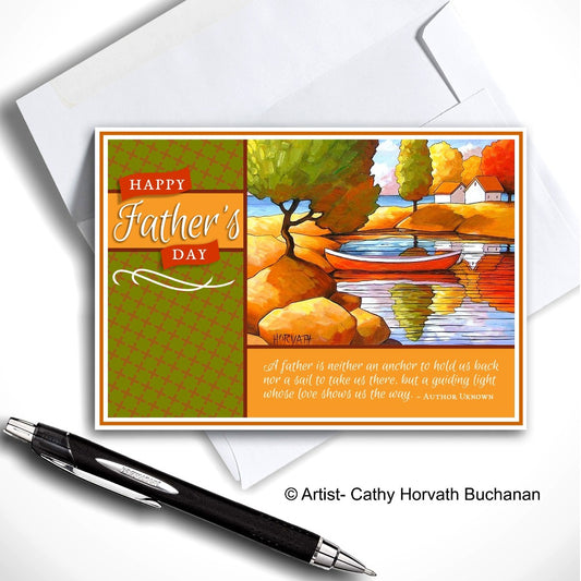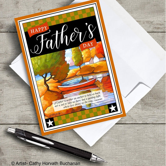 Fathers Day Canoe Scene Printable Card Kit, PDF + JPG Instant Download
