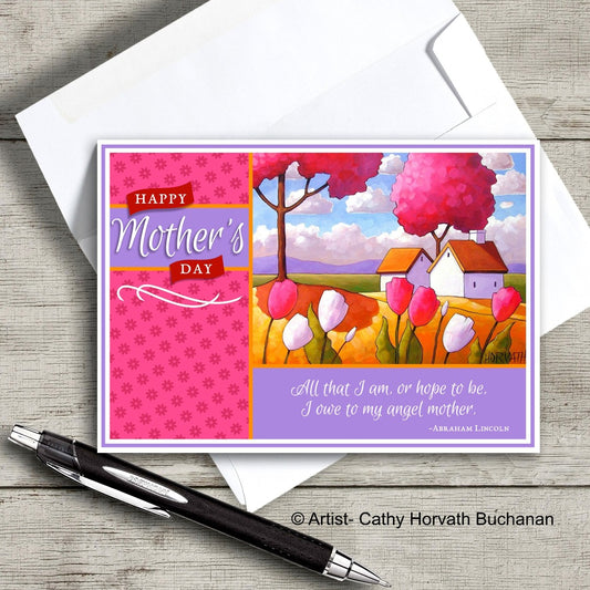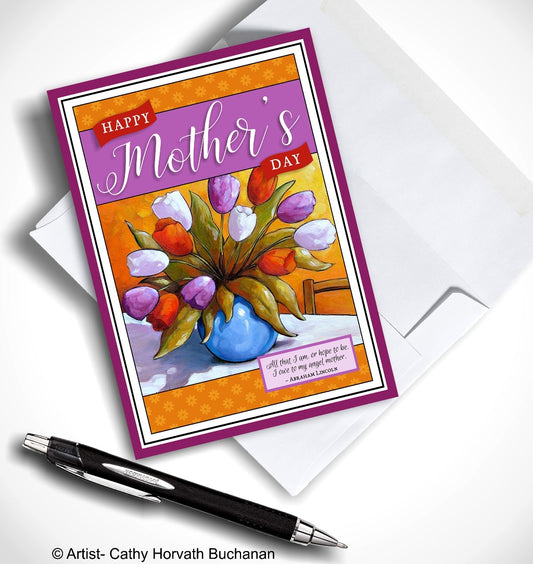 Mothers Day Country Tulips Printable Card Kit, PDF + JPG Instant Download