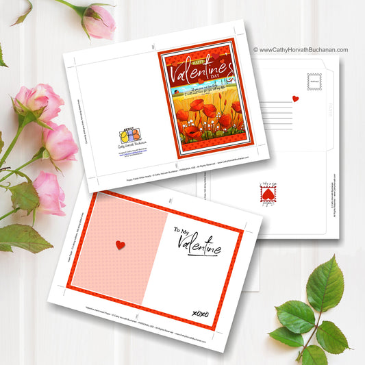 Valentines Day Poppies Printable Wall Art, Romantic Decor Digital Download