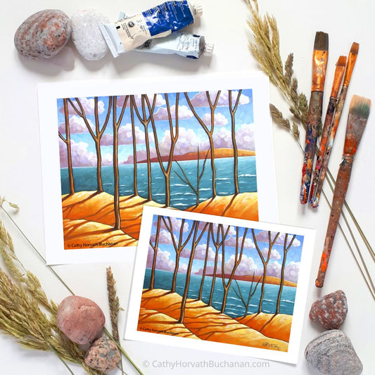 Lakeside Tree Shadows Art Print, Coastal Giclee