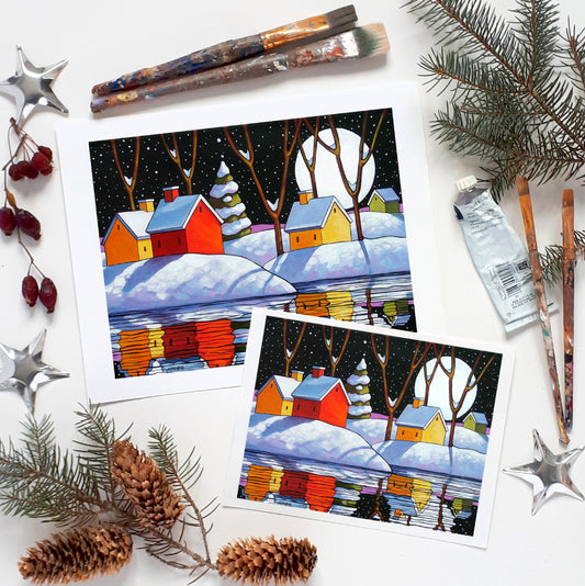 Christmas Night Moon Giclee, Snowy Winter Reflection Art Print