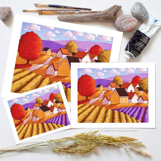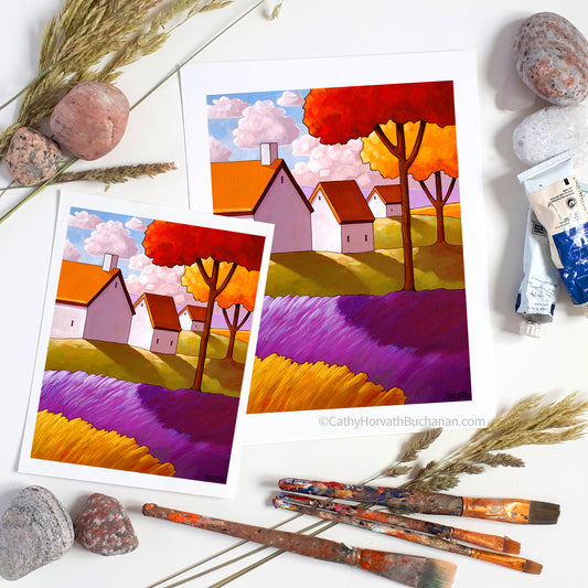 Lavender Country Cottages Art Print Home Decor, Wall Art Giclee