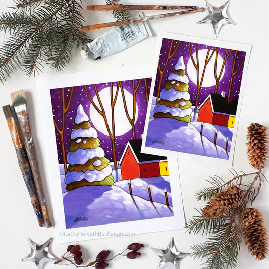 Winter Nite Art Print Home Decor, Wall Art Giclee