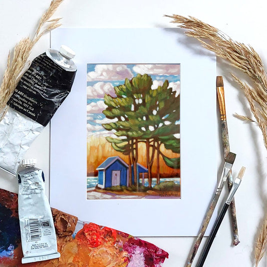 Kettle Creek Boat Launch Hut, Petite Paper Landscape Original Painting