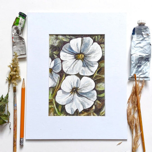DAY 15 - White Petunias- Original Daily Draw to Paint
