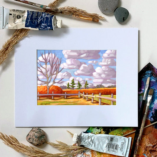 Fall Colors Fence, Petite Paper Landscape Original Painting