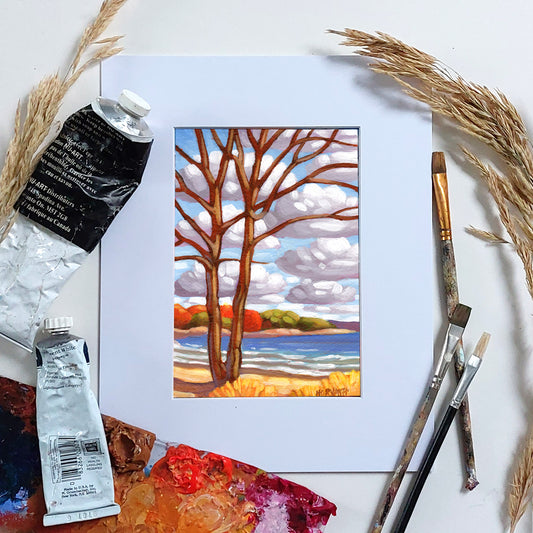 Little Beach Tree, Petite Paper Landscape Original Painting