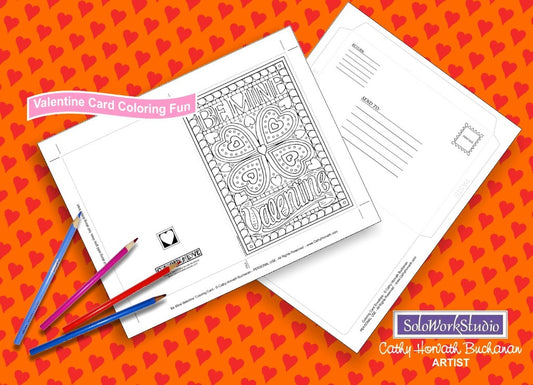 Valentine 4 pack Coloring Card Kit + Envelope, Instant Printable PDF