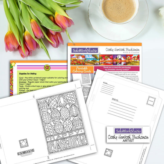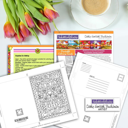 Fancy Easter Egg Coloring Kit, Card + Envelope, PDF Download Printable