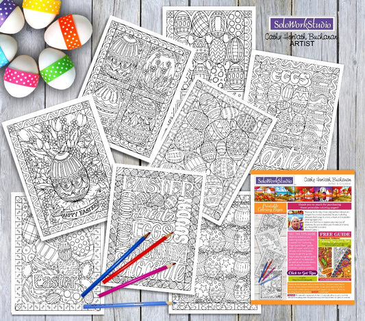 Happy Easter 8 Pack of Coloring Pages, PDF Download Printable