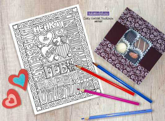 Valentine 4 pack Coloring Pages, Romantic PDF Instant Printable Download