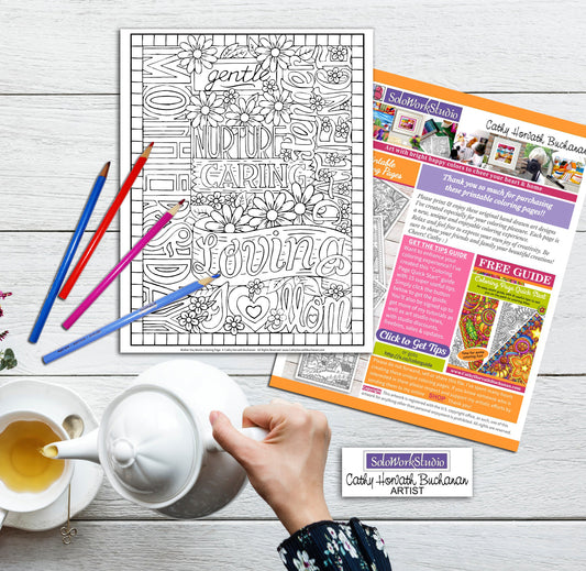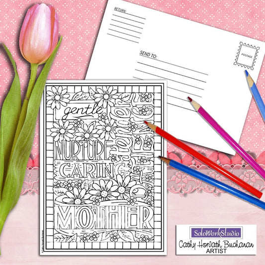 Mothers Day Words Coloring Card Kit, Card + Envelope PDF Download