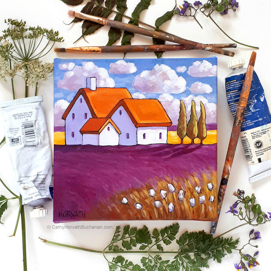 Lavender Under Clouds Original Painting, Little Big Sky 7x7