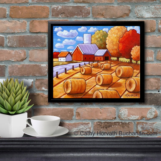 Storm Clouds Hay Field Original Painting, Little Big Sky 7x7