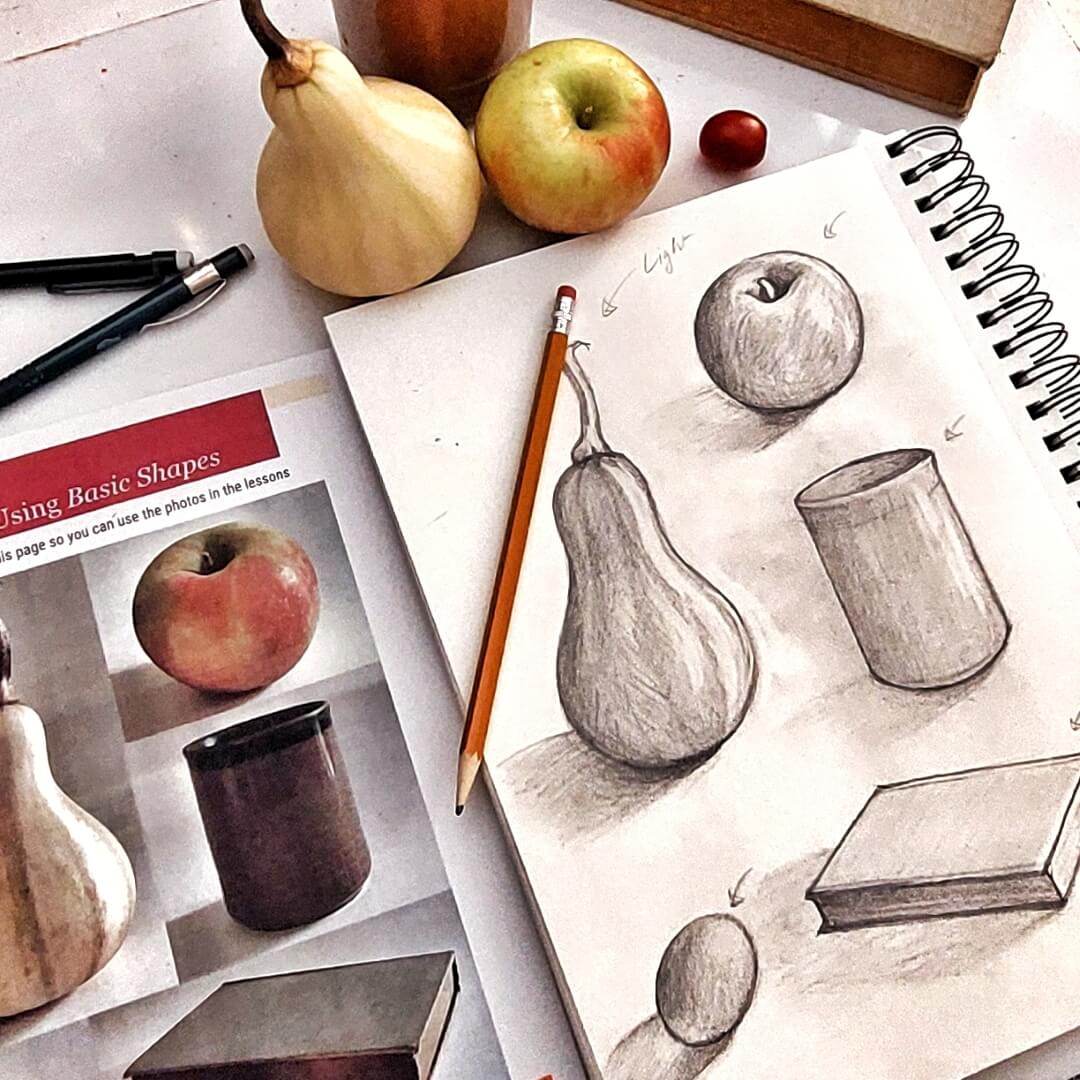 In this lesson we'll be covering drawing basic geometric shapes and everyday objects. Shapes form the basis of drawing, in this section you'll learn how to use shapes to flesh out and build your prelimary drawing.